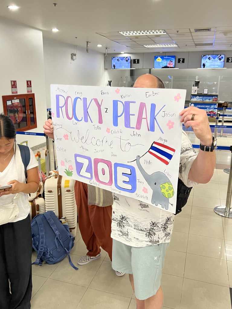 After a full 24 hours of travel, including a 13-hour flight to Taipei and another 3-hour flight to Chiang Mai, we’ve arrived in Thailand! Several people from the ZOE team received us at the airport, equipped with a handmade welcome sign. Our first day was focused on settling into our hotel and getting an orientation from the ZOE leaders about logistics, cultural differences we needed to be aware of, and ZOE’s child protection policy. We’ve had two meals so far on the ground, and everyone agrees that real Thai food is better than airplane Thai food!